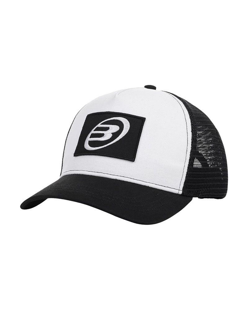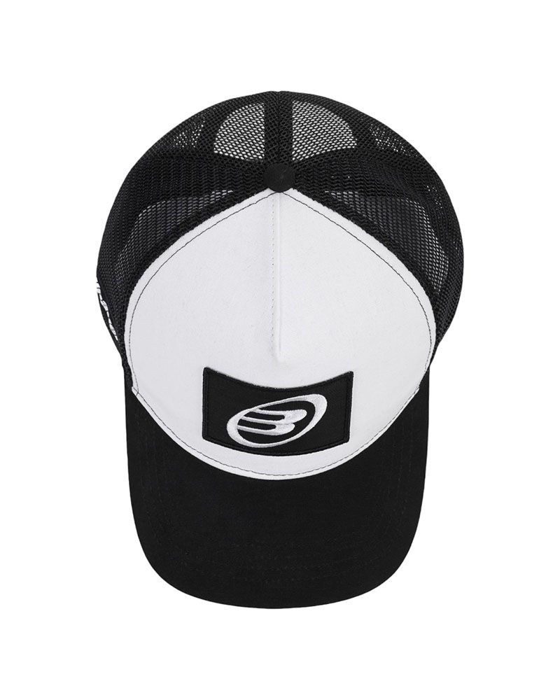 Șapca Bullpadel Negru-Alb tip trucker oferă confort și ventilație optimă în timpul jocului.